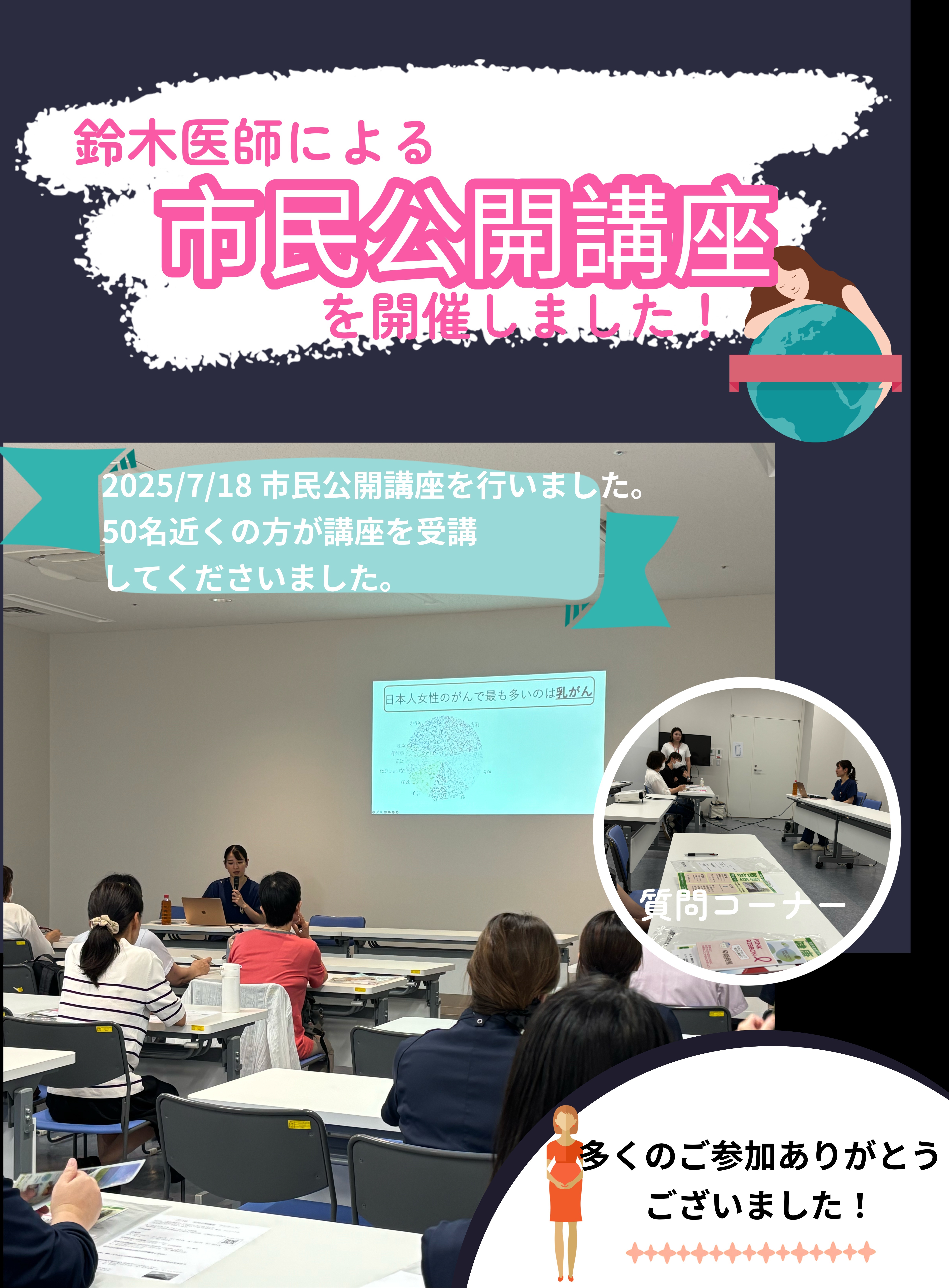 2024年度より患者主体の会から病院主体の会に生まれ変わりました。当院で乳がん治療されている患者さまを対象に年4回開催しています。是非ご参加お待ちしています。
